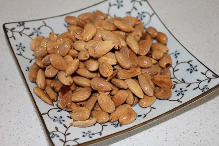 Kom mandlerne i en skål sammen med salt og vand. Lad dem stå i 1/2 time. Hæld mandlerne i en sigte og lad dem dryppe af i en sigte. Spred dem efterfølgende ud på en bageplade beklædt med bagepapir og rist dem i ovnen ved 100 grader i ca 1 time. Tag mandlerne ud, vend dem med olie og spred dem igen ud på bagepladen. Drys salt over og rist mandlerne i yderligere 1/2 time i ovnen, til de er gyldne. Afkøl mandlerne og servér:)